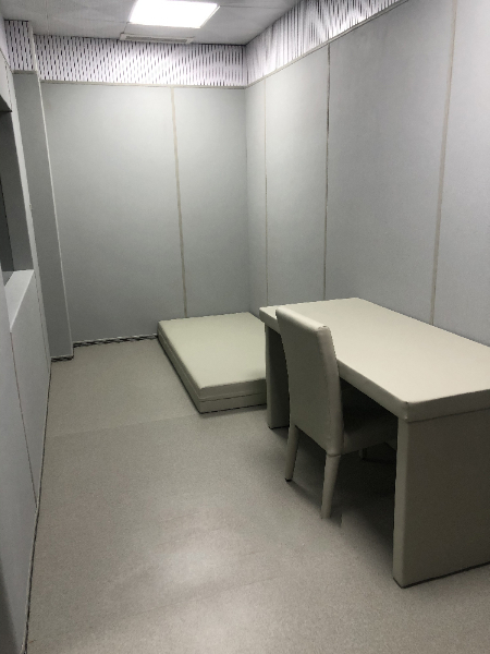 审讯室必须全部使用防火防撞棉、防火皮革面料等软包材质,室内无凸出阳角和明柱,采用防爆灯具照明,配齐手铐、脚镣固定环,防止发生被审讯人员撞击、自残、脱逃等意外人身伤害情况。此次对审讯室防撞软包进行标准化改造,有效提升了被告人的安全性及严密性,增强了司法警察的押解及刑事审判工作的安全保障,是随县法院司法警察规范执法的又一重要举措。进一步确保刑事审判工作安全顺利进行,消除因审讯场所问题可能带来的安全隐患。